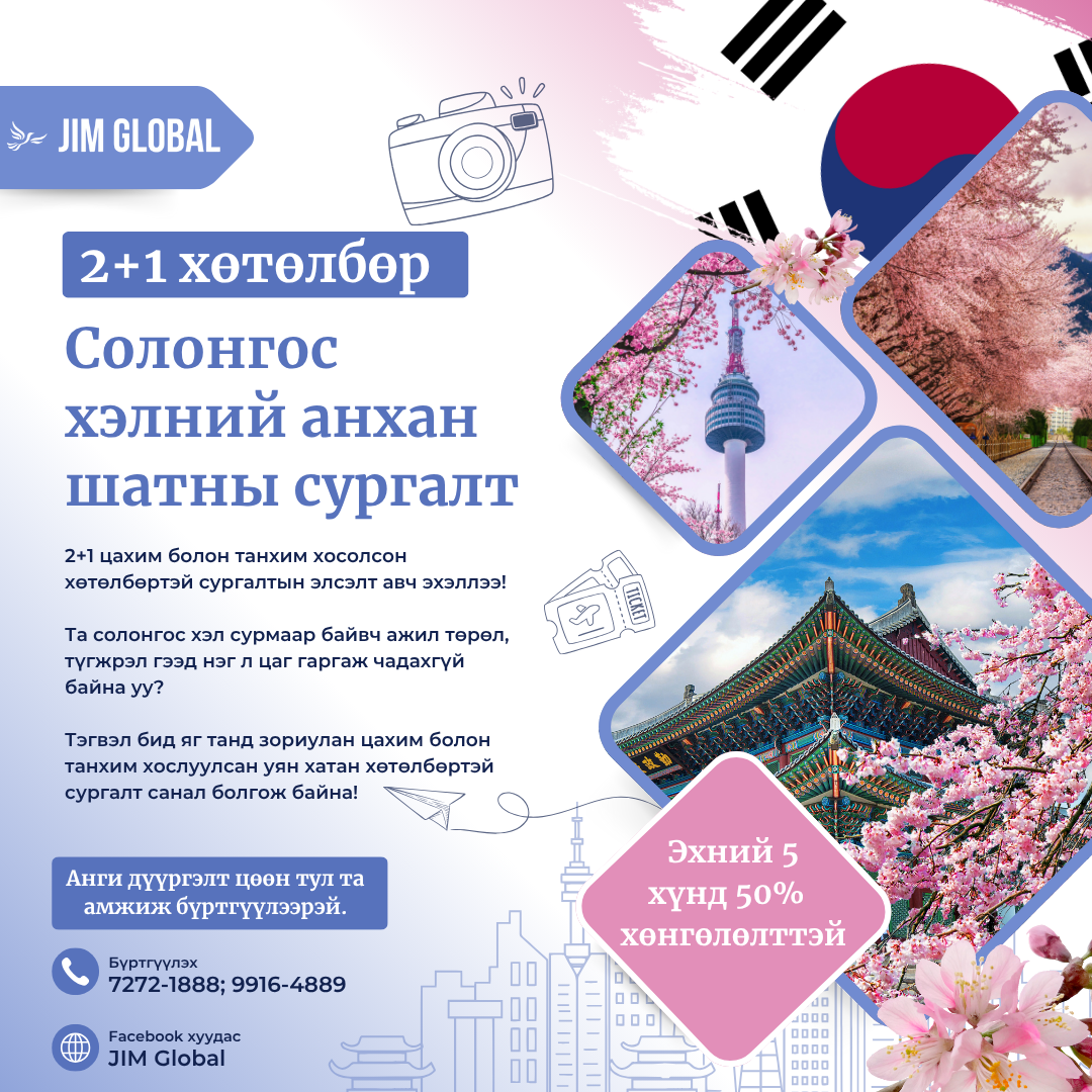 🇰🇷Бид БНСУ-ын бүх их дээд сургуульд хүссэн мэргэжилээр тань боловсролын бүх түвшинд албан ёсны эрхтэйгээр зуучлах болон визтэй холбоотой бүх төрлийн цогц үйлчилгээ үзүүлж сэтгэлээсээ ажилладаг хамт олон🤗