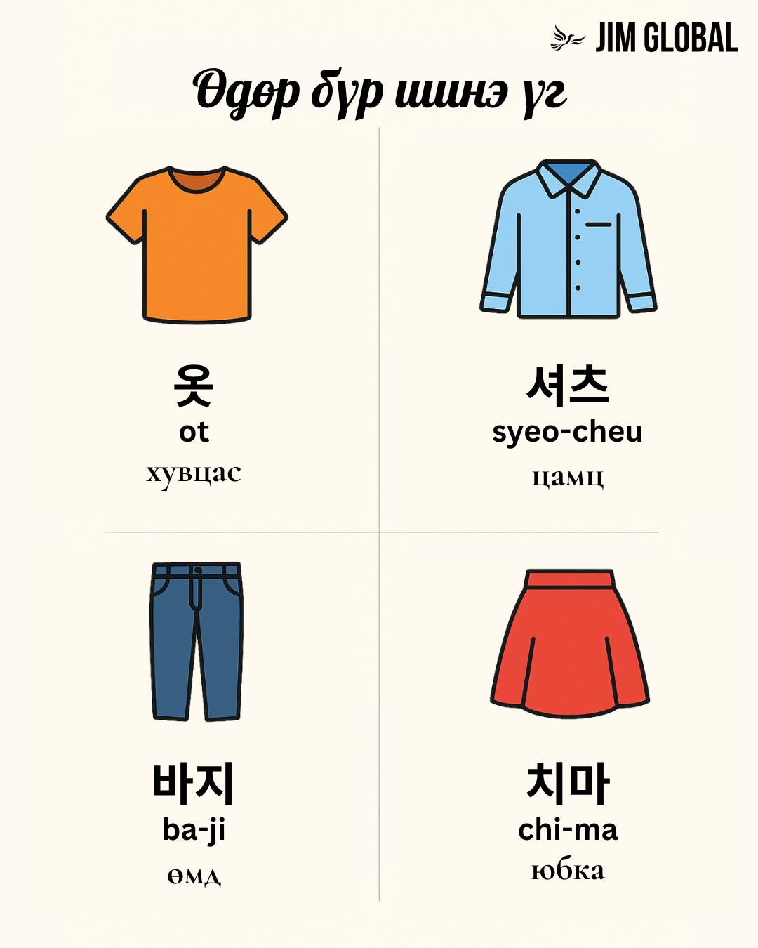 Өнөөдрийн шинэ үгнүүд: хувцас, цамц, өмд, юбка