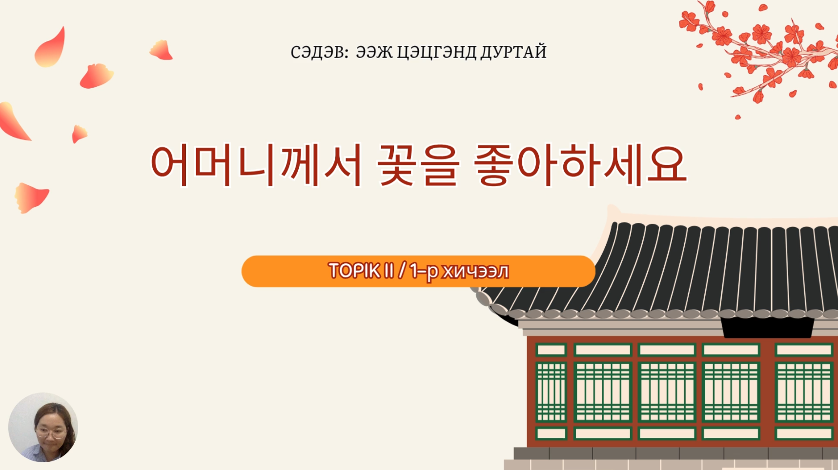 • Солонгос хэлний хичээл TOPIK 2-ийн эхний хичээлийг үнэгүй үзэх боломжтой боллоо.